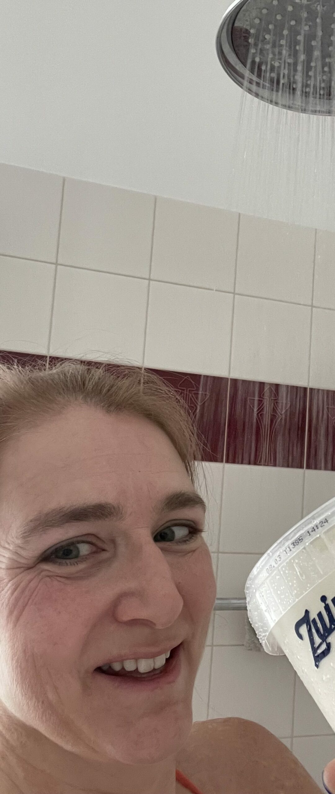 Die opdracht was ik soms vergeten en de samenvatting las ik ook wel eens de dag voor de volgende sessie. Nou wist ik natuurlijk nog wel wat we gedaan hadden, maar toch moest ik dan nog de opdracht doen. Zoals het opschrijven van mijn strenge regels: de moetjes en de mag-niet-jes. En die omvormen tot een zin die wel werkt. Dus van ik mag niet, naar ik mag tot ik wil. Lijkt een klein verschil. Ook ging ik douchen met een pak yoghurt en maakt ik daar een foto van (met bikini aan). De overgang, wat werkt?